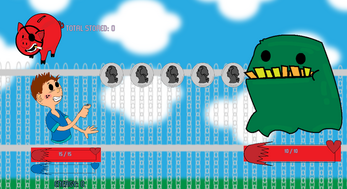 Press Z to flip a coin. On heads, press X to attack, or C to defend.